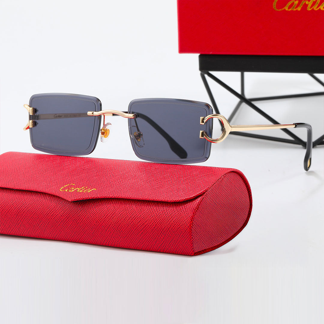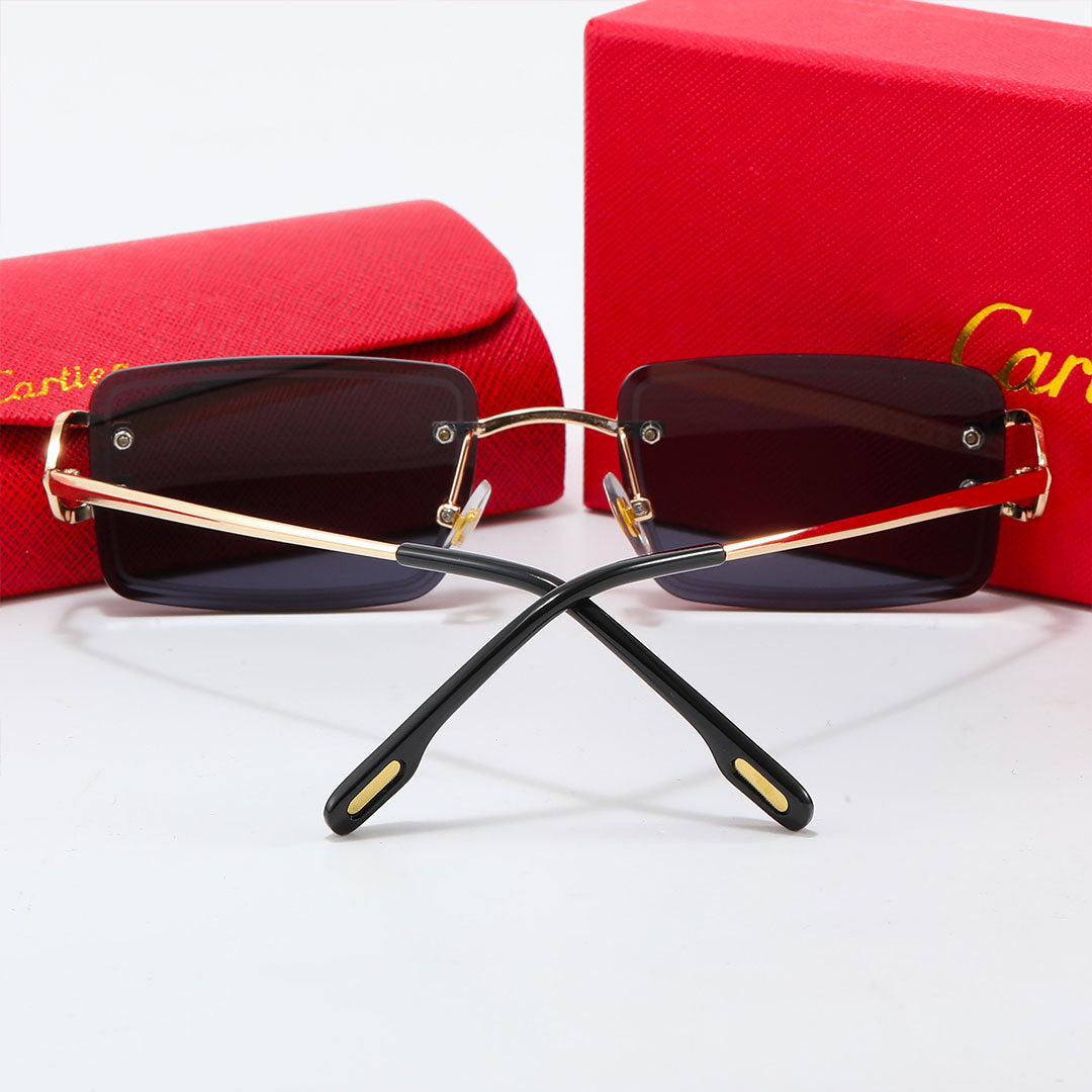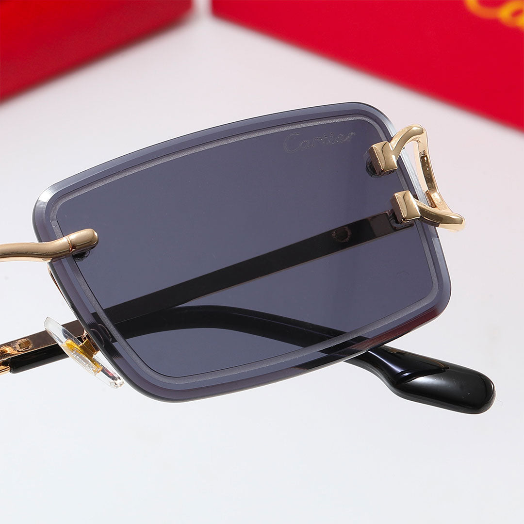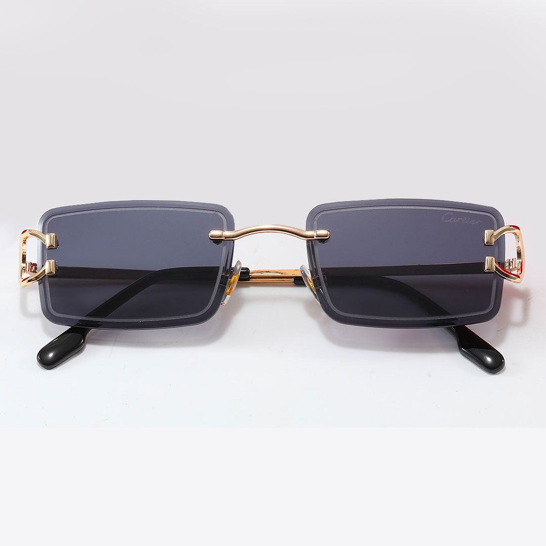 Cartier eyewear is the ultimate symbol of refinement, heritage, and timeless luxury. Crafted with exceptional savoir-faire, each pair embodies the Maison’s legacy of elegance and prestige. This model features a rimless square design with gold metal temples and dark gray lenses, enriched by Cartier’s signature luxurious detailing. Minimalist yet opulent, these sunglasses are masterpieces of sophistication — chosen by those who demand nothing less than perfection and wish to express true exclusivity.