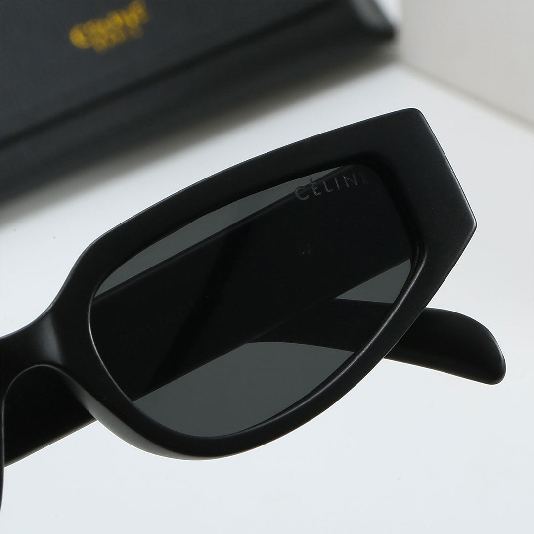 Celine eyewear embodies modern elegance with a bold, minimalist aesthetic. Known for its clean lines and Parisian sophistication, each pair combines contemporary design with timeless luxury. This model features a rectangular black acetate frame with dark gray lenses, enhanced by the iconic Celine logo in silver on the temples. Sleek and fashion-forward, these sunglasses are the perfect expression of effortless style and refined confidence, ideal for those who appreciate understated yet powerful accessories.