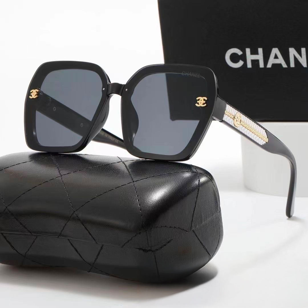 Chanel eyewear embodies timeless elegance and Parisian sophistication. Inspired by the legacy of Gabrielle Chanel, each pair combines refined design, luxurious materials, and iconic details. This model features an oversized square black acetate frame with dark gray lenses, enriched by the distinctive gold CC logo on the front temples. Bold yet elegant, these sunglasses are a true expression of femininity, effortless style, and enduring luxury.