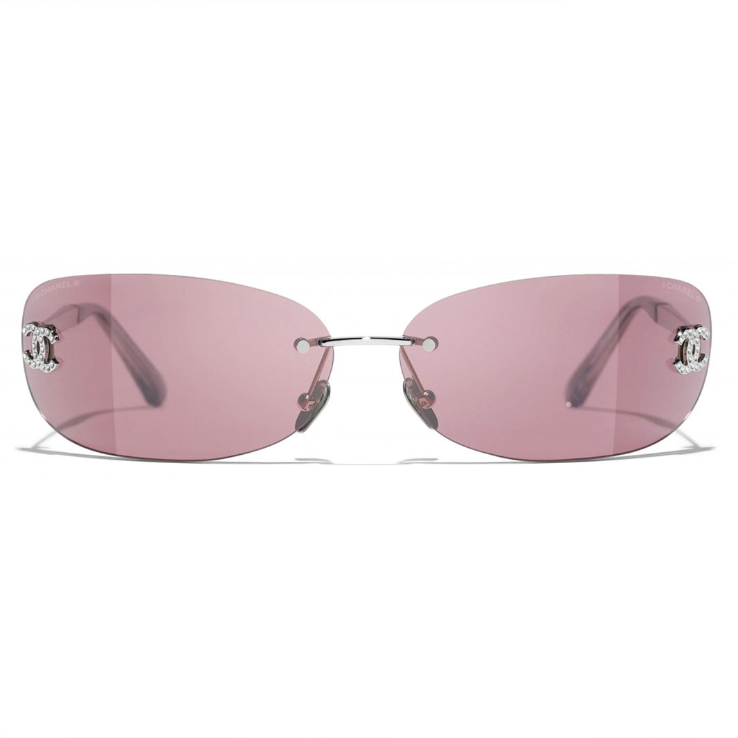 Chanel eyewear embodies timeless elegance and Parisian sophistication. Inspired by the legacy of Gabrielle Chanel, each pair combines refined design, luxurious materials, and iconic details. This model features a rimless oval design with bold pink lenses, enhanced by the signature crystal-embellished CC logo on the temples. Light, feminine, and glamorous, these sunglasses are more than just eyewear — they are a symbol of style, femininity, and enduring luxury.