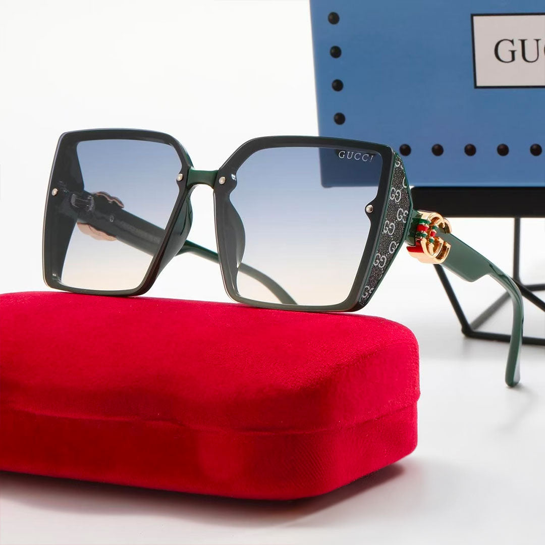 Discover timeless elegance with Gucci eyewear — a symbol of Italian craftsmanship and innovation since 1921. Worn by celebrities and fashion leaders worldwide, Gucci glasses are more than an accessory; they are a statement of sophistication and individuality. This model features an oversized square green acetate frame with gradient blue lenses, enhanced by the signature green and red Gucci temples with golden accents. Bold, elegant, and fashion-forward, these sunglasses perfectly combine luxury with a unique personality, making them the ideal choice for those who love to stand out with refined style.