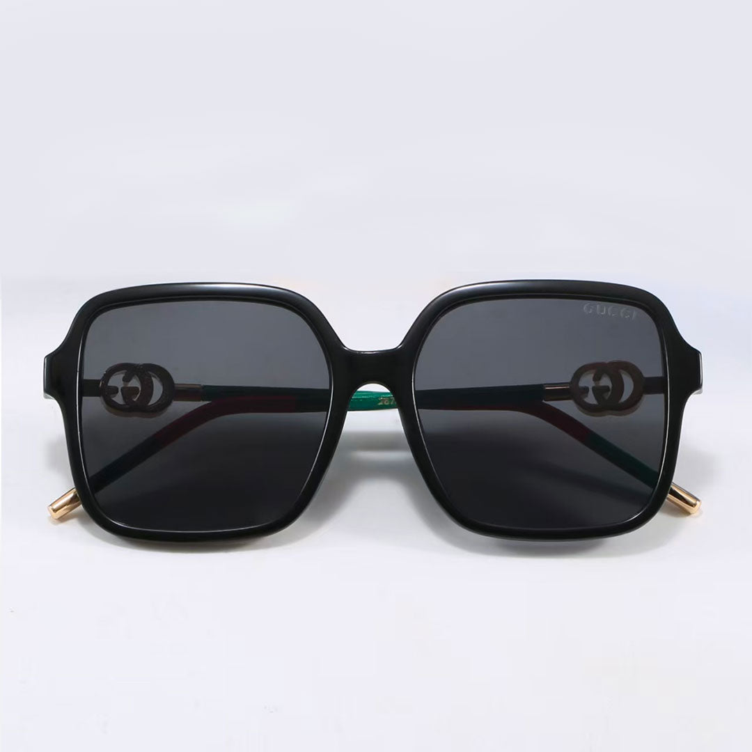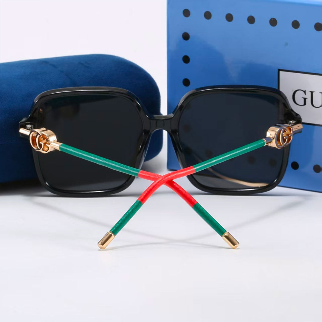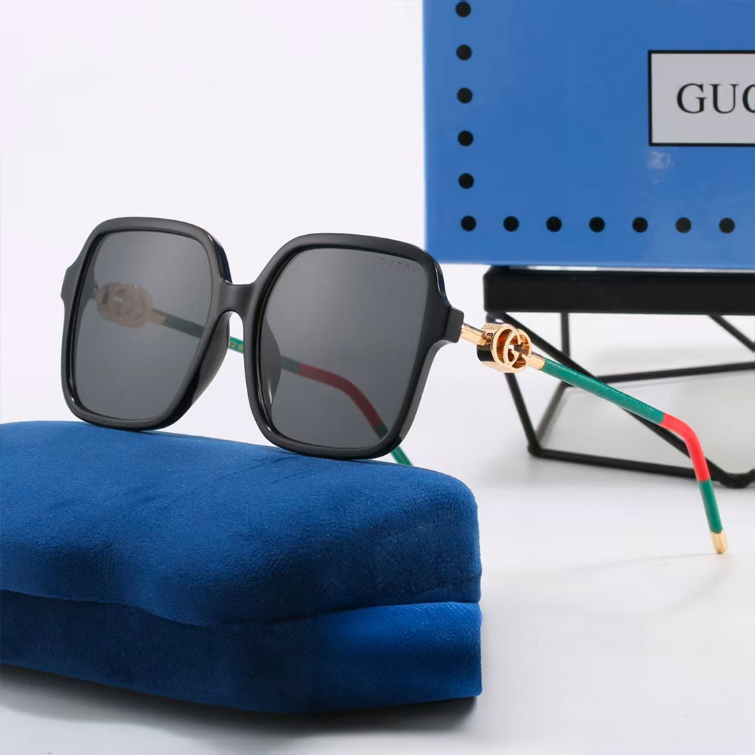 Discover timeless elegance with Gucci eyewear — a symbol of Italian craftsmanship and innovation since 1921. Worn by celebrities and fashion leaders worldwide, Gucci glasses are more than an accessory; they are a statement of sophistication and individuality. This model features an oversized square black acetate frame with dark gray lenses, perfectly complemented by the iconic green and red Gucci temples with golden accents. A bold yet refined design, these sunglasses embody luxury and contemporary style, making them the ideal choice for those who want to stand out with elegance.