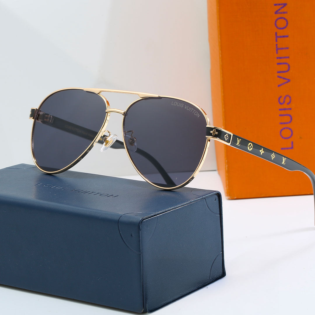Louis Vuitton eyewear reflects timeless elegance and the spirit of travel that has defined the Maison since 1854. Crafted with meticulous attention to detail, each pair combines innovation, sophistication, and iconic design elements. This model features a classic aviator gold metal frame with dark gray lenses, enriched by the signature LV monogram details on the temples. Stylish and prestigious, these sunglasses are worn by tastemakers worldwide — a true symbol of luxury, individuality, and refined style.