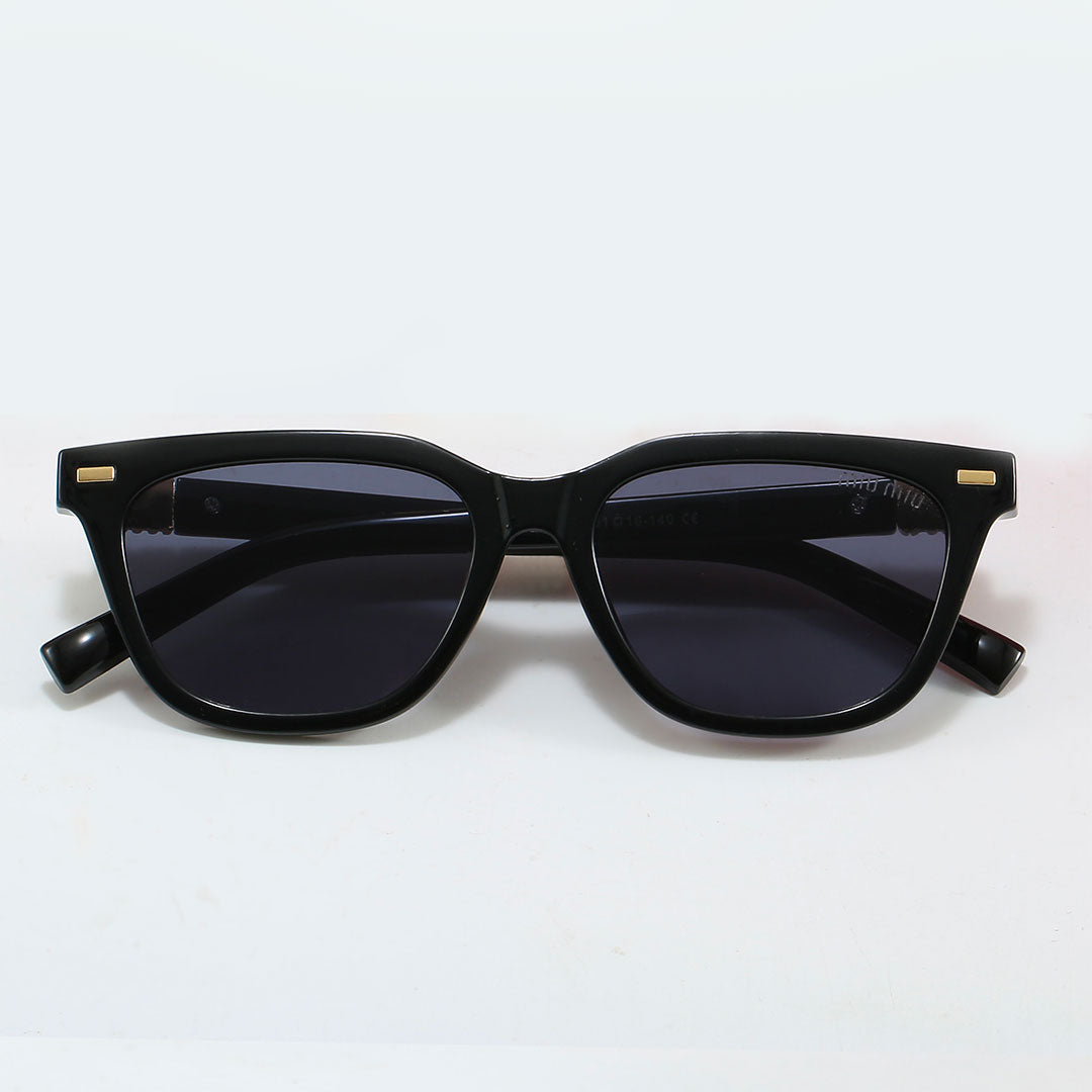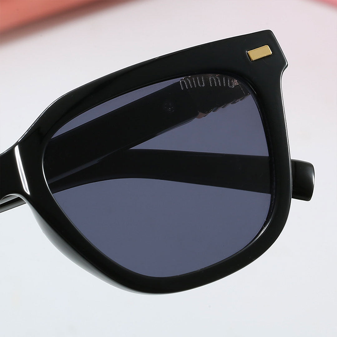 Miu Miu eyewear captures playful elegance with a bold, contemporary spirit. A symbol of modern femininity and unconventional style, Miu Miu sunglasses blend creativity, charm, and sophistication — perfect for those who dare to stand out. This model features a classic square black acetate frame with dark gray lenses, accented by subtle golden details on the front for an extra touch of refinement. Minimalist yet fashionable, these sunglasses reflect Miu Miu’s unique personality, making them the ideal accessory for confident women with a modern sense of style.