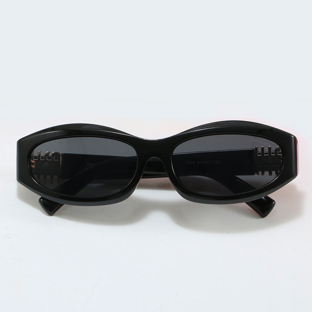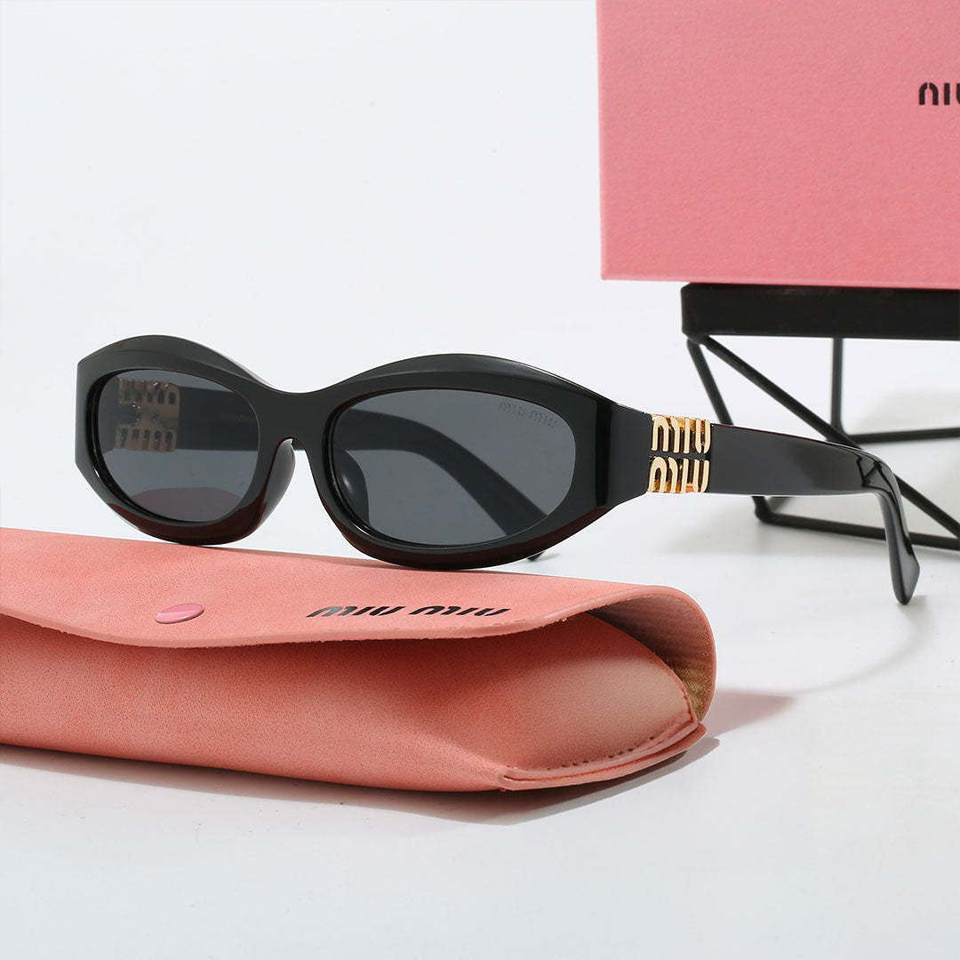 Miu Miu eyewear captures playful elegance with a bold, contemporary spirit. A true symbol of modern femininity and unconventional style, Miu Miu sunglasses blend creativity, charm, and sophistication — perfect for those who dare to stand out. This model features an oval black acetate frame with dark gray lenses, enhanced by distinctive golden details on the temples that add a refined touch. Fashion-forward and chic, these sunglasses are ideal for women who want to express their individuality with elegance and confidence.