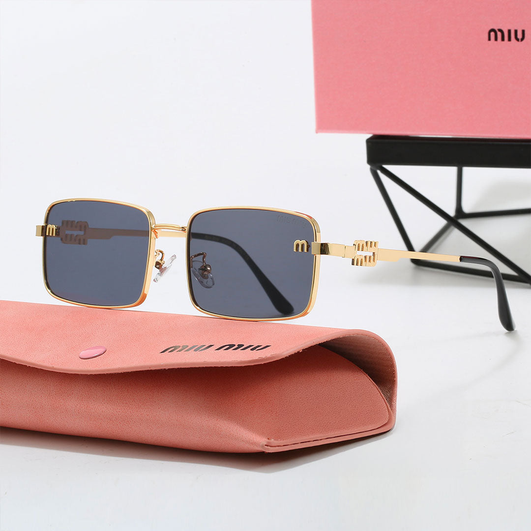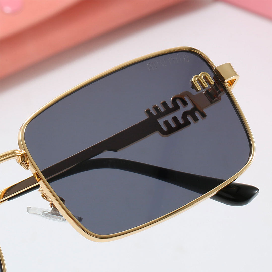 Miu Miu eyewear captures playful elegance with a bold, contemporary spirit. A true symbol of modern femininity and unconventional style, each pair blends creativity, charm, and sophistication — perfect for those who dare to stand out. This model features a square gold metal frame with slim temples and dark gray lenses, combining a minimalist design with a chic and fashionable touch. Lightweight yet distinctive, these sunglasses embody Miu Miu’s unique character, making them the ideal accessory for women who embrace modern elegance with confidence.
