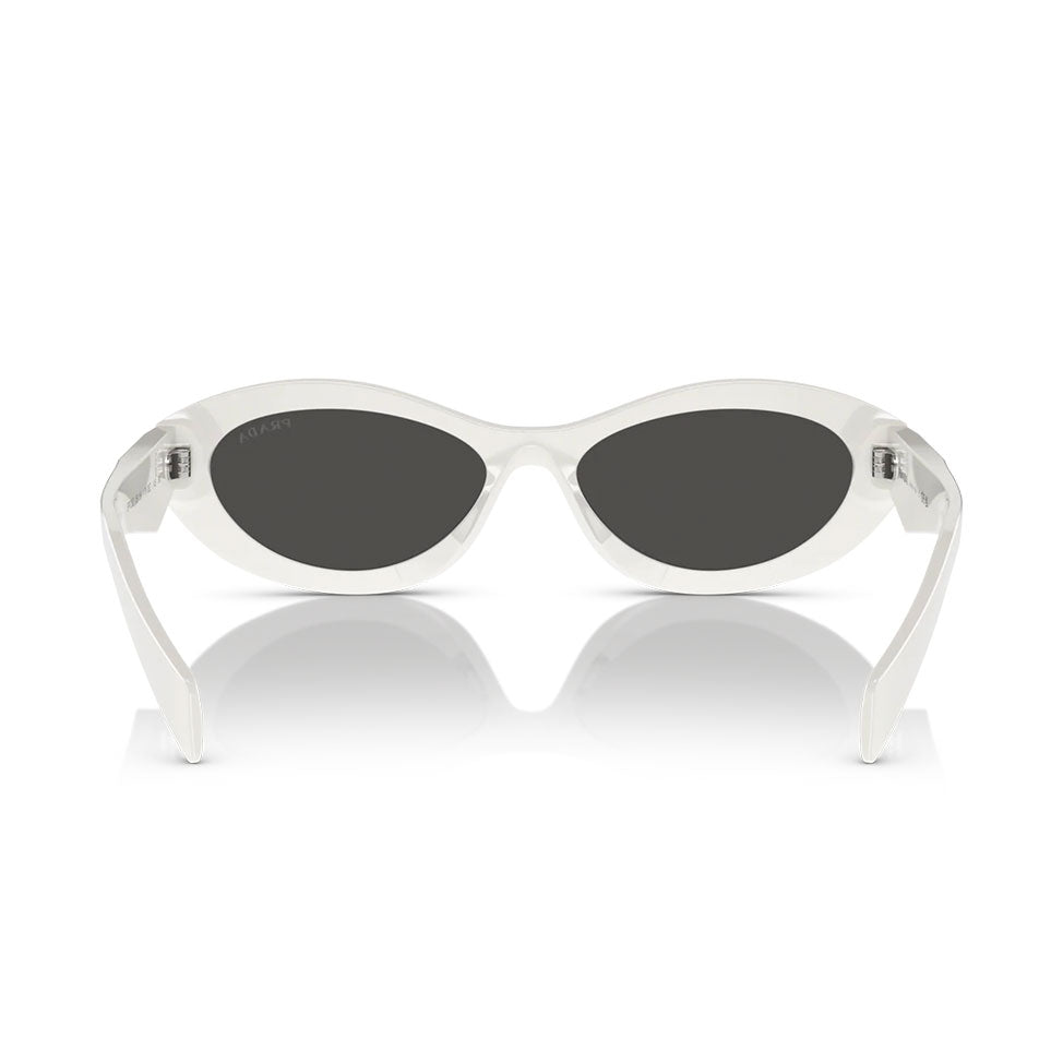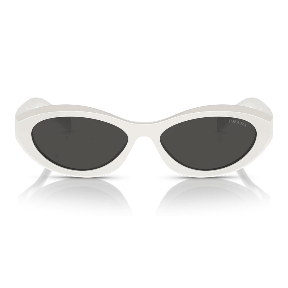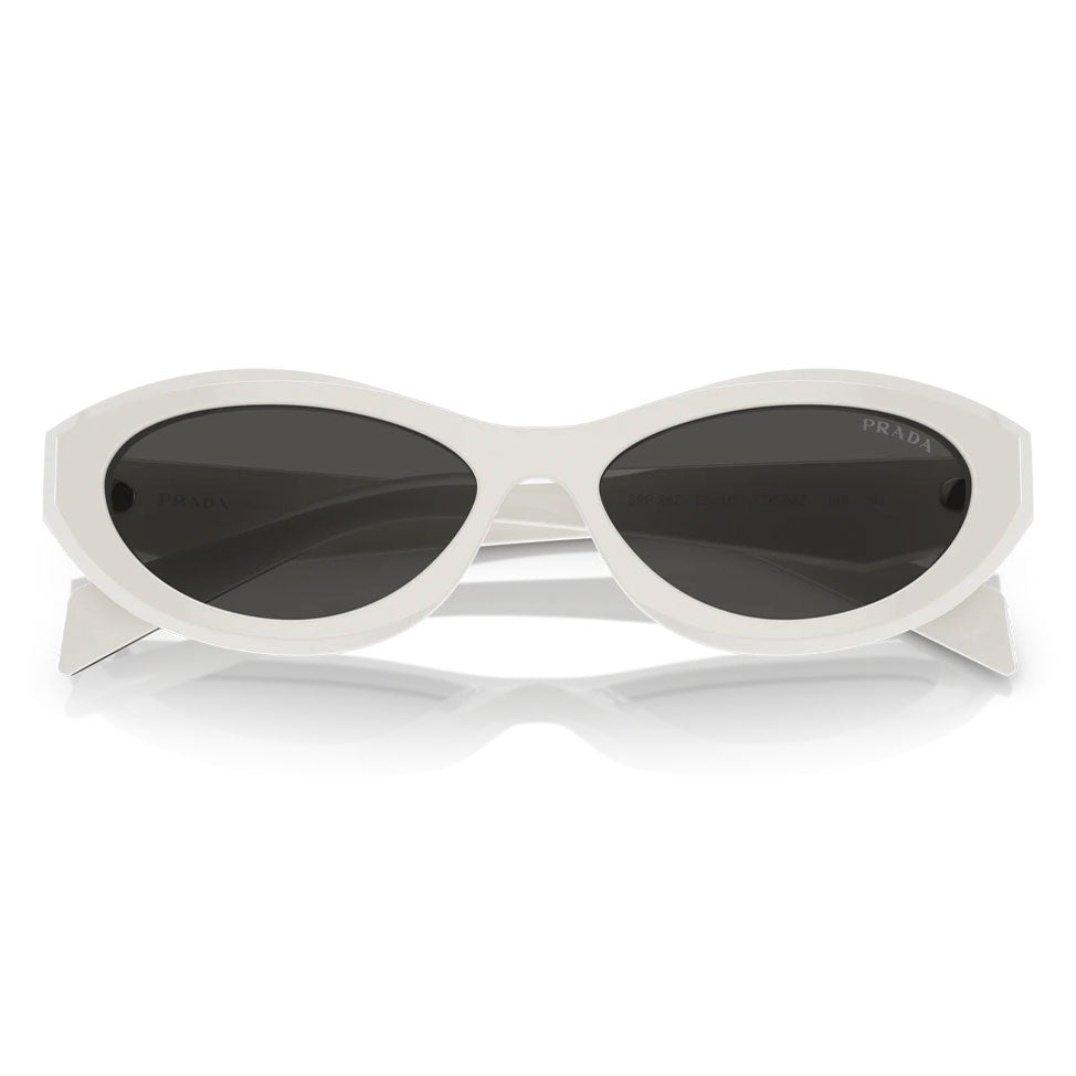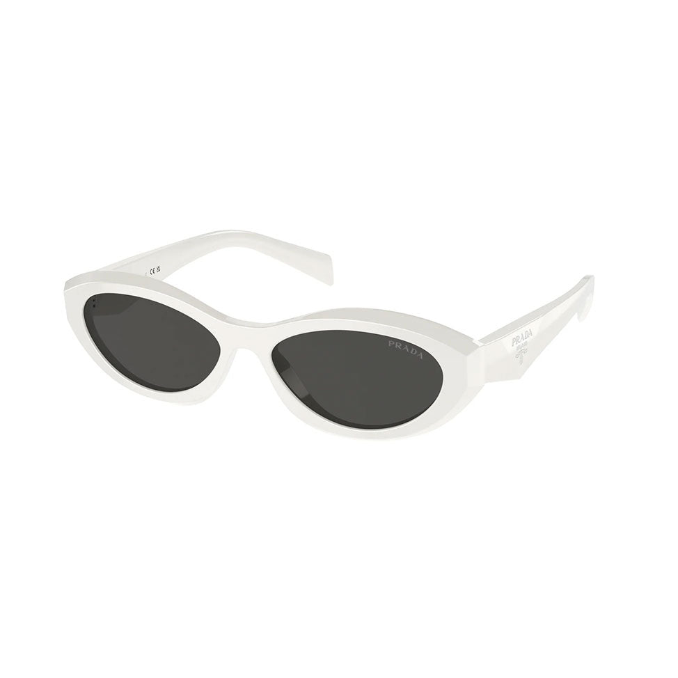 The Prada sunglasses collection combines refined and modern design with vintage-inspired elements, offering elegant frames that embody a contemporary idea of luxury. This model features a white acetate cat-eye frame paired with dark gray lenses, creating a bold yet sophisticated contrast. With its slim and tapered silhouette, it recalls retro charm while maintaining Prada’s modern and stylish identity. Perfect for those who want to stand out with a fashionable accessory, these sunglasses represent Italian craftsmanship, elegance, and timeless design.