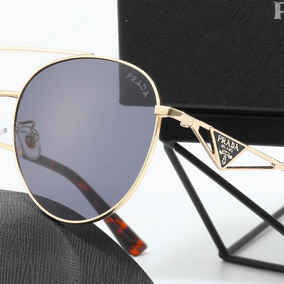Prada eyewear represents the perfect balance of innovation, elegance, and refined style. Since its foundation in Milan in 1913, Prada has become a global symbol of luxury and avant-garde design. This model features a classic aviator frame in gold metal with slim temples and dark gray lenses, combining timeless sophistication with modern functionality. Lightweight, stylish, and versatile, these sunglasses embody Italian excellence — the perfect accessory for those who appreciate bold aesthetics and enduring elegance.