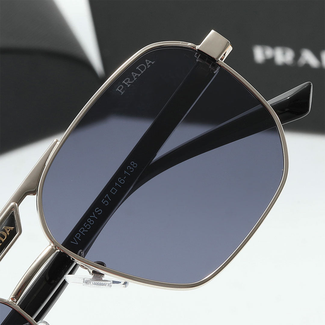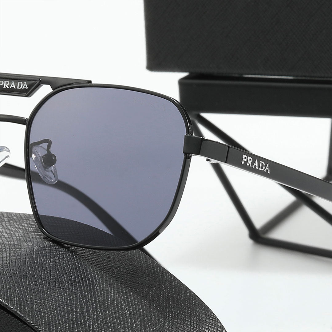 Prada eyewear represents the perfect balance of innovation, elegance, and refined style. Since its foundation in Milan in 1913, Prada has become a global symbol of luxury and avant-garde design. This model features a bold square silver metal frame with a distinctive double bridge and dark gray lenses, combining modern sophistication with timeless appeal. Lightweight yet strong, these sunglasses embody Italian craftsmanship and are the perfect choice for those who appreciate true excellence and contemporary elegance.