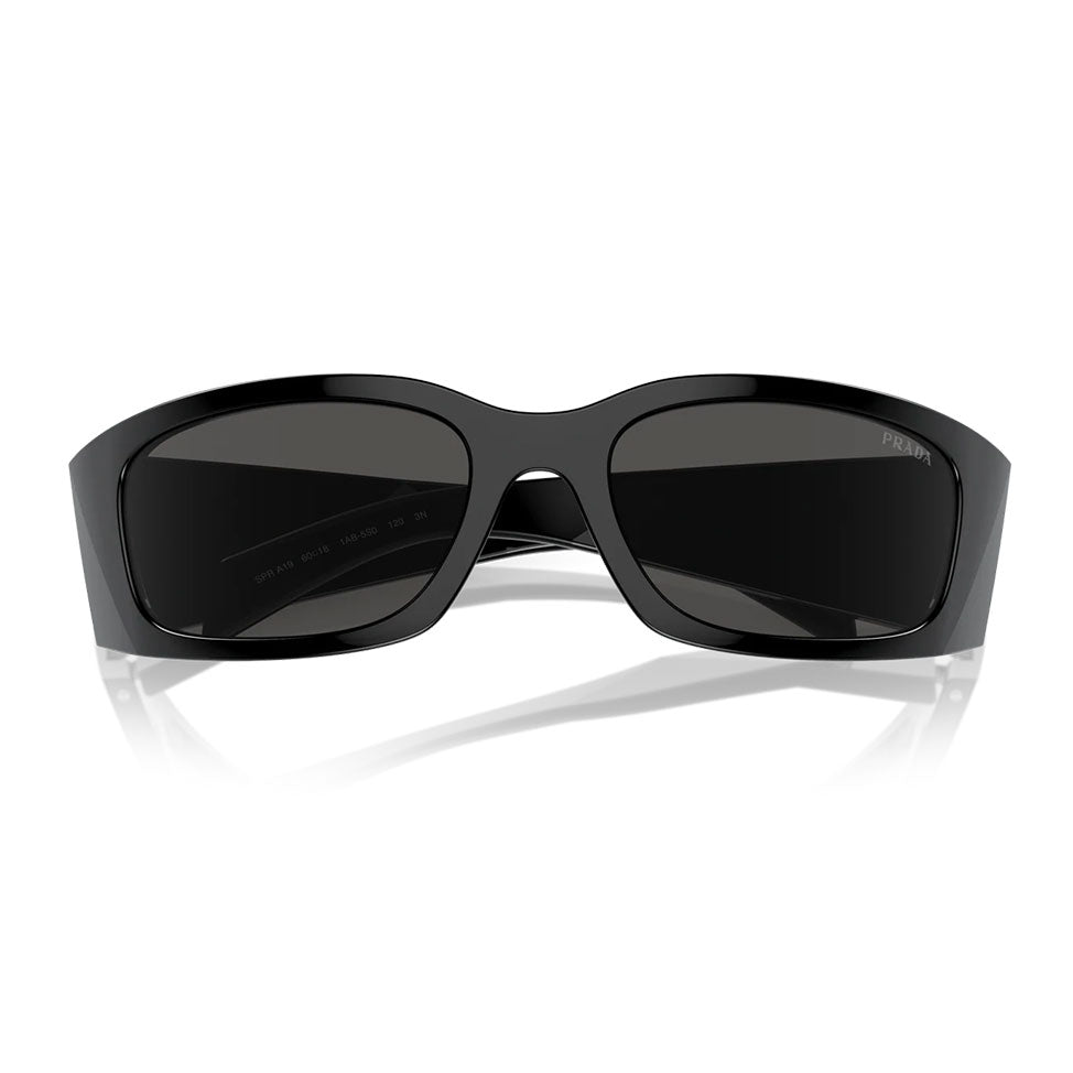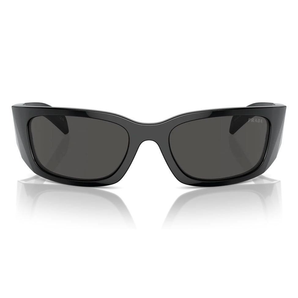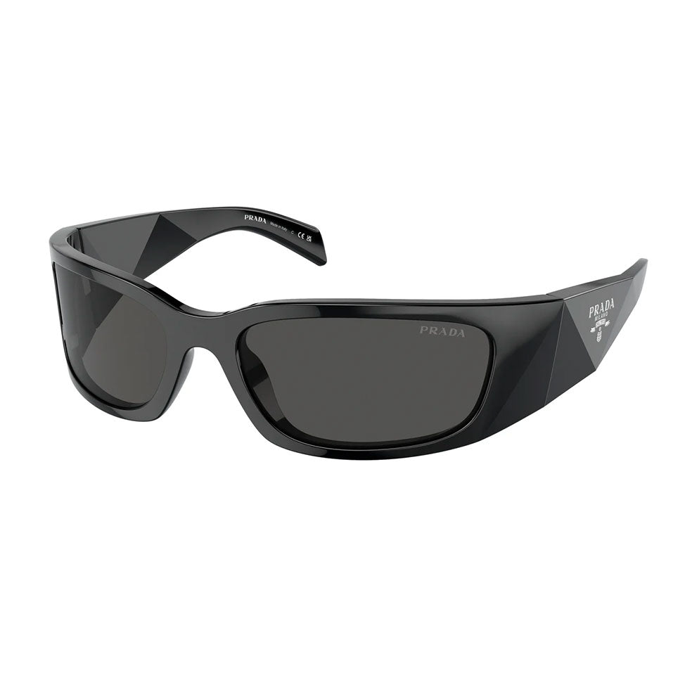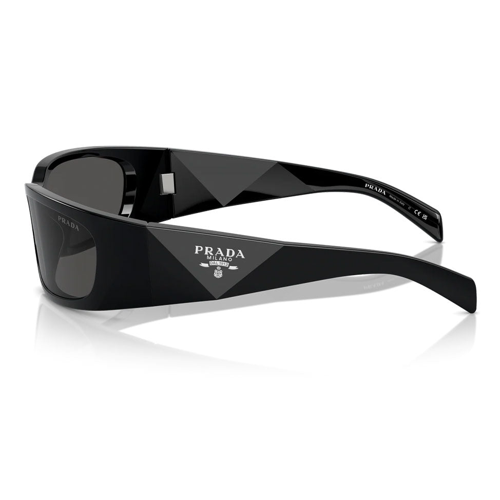 Prada eyewear represents the perfect balance of innovation, elegance, and refined style. Since its foundation in Milan in 1913, Prada has become a global symbol of luxury and avant-garde design. This model showcases a bold wraparound black acetate frame with sleek dark gray lenses, delivering both modern functionality and timeless sophistication. Enhanced by the iconic Prada logo on the temples, these sunglasses embody Italian excellence, making them the perfect accessory for those who appreciate bold aesthetics, refined details, and contemporary elegance.