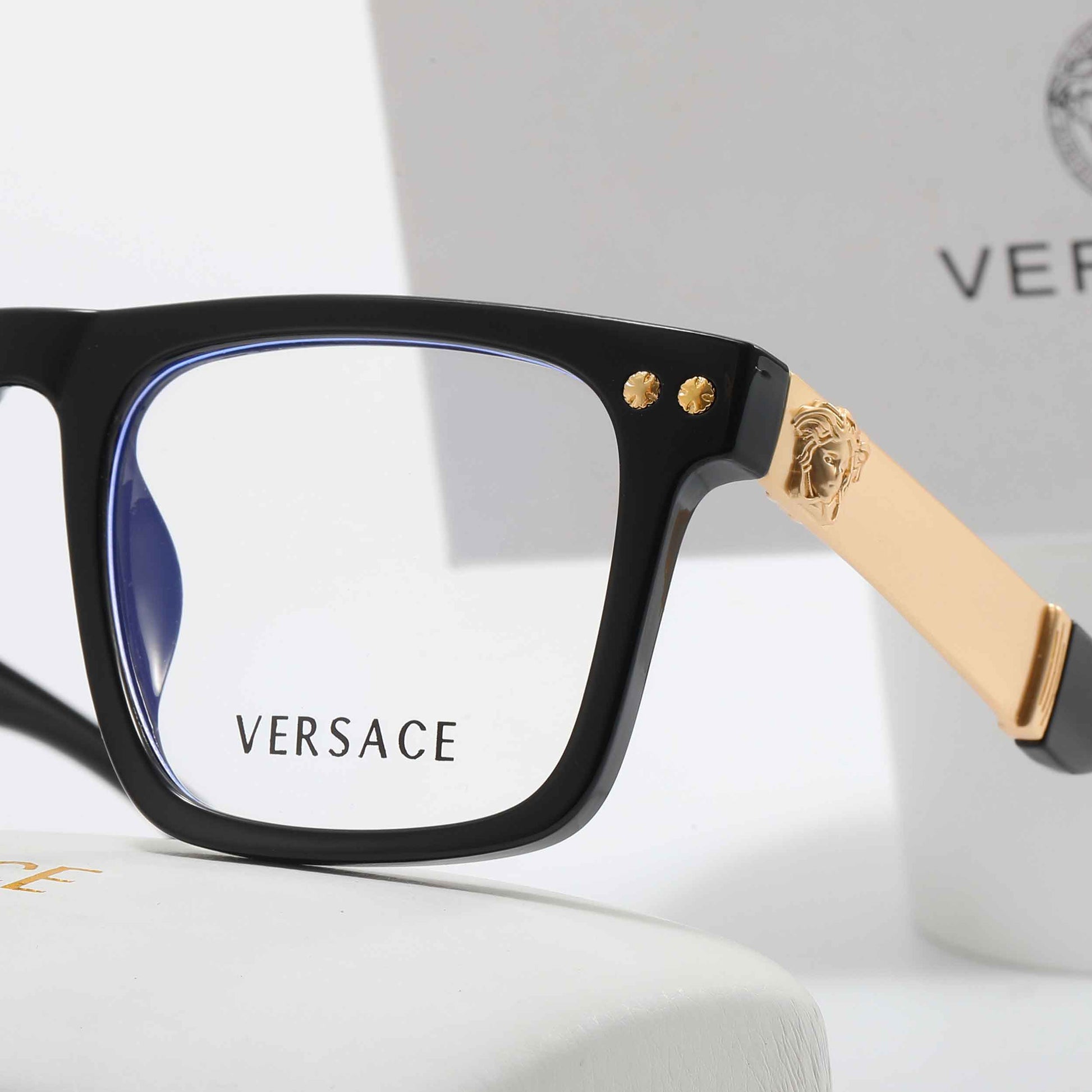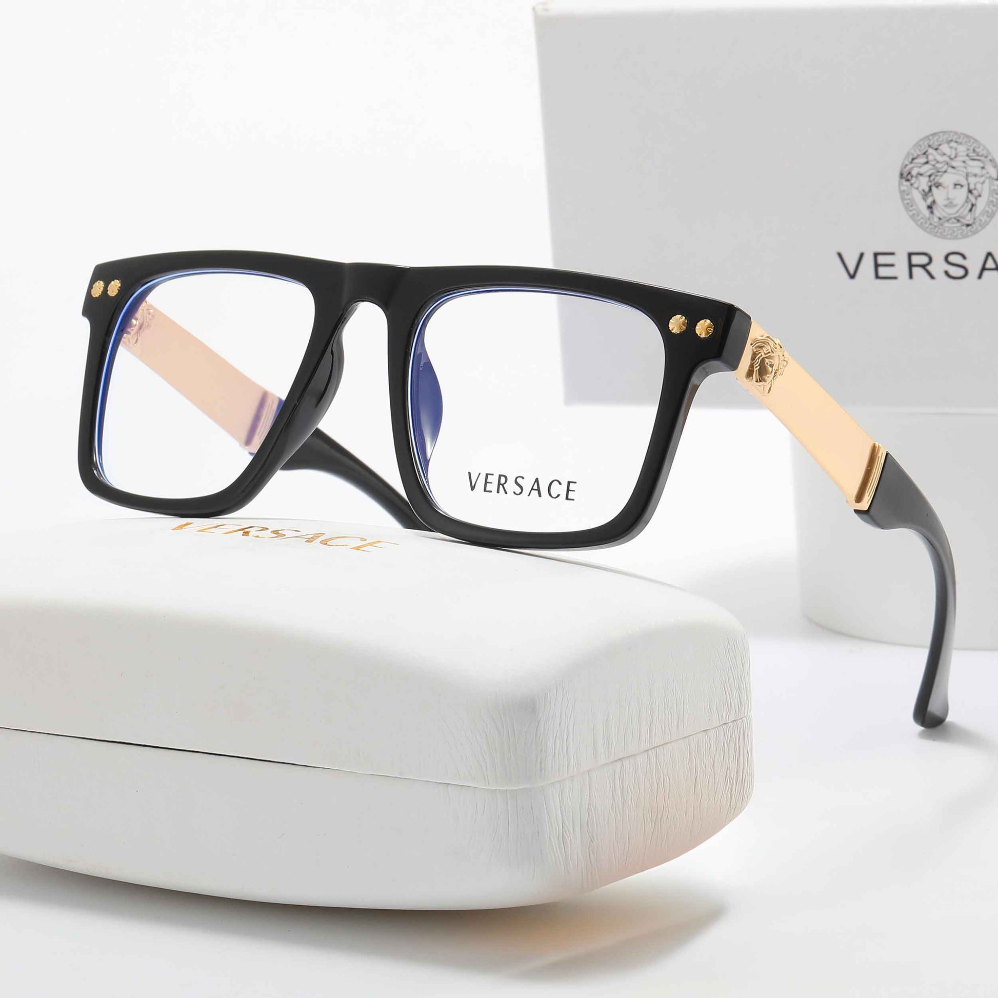 Versace eyewear is a bold expression of glamour, power, and Italian luxury. Characterized by iconic details like the Medusa emblem, each pair reflects the brand’s unmistakable identity — daring, opulent, and unapologetically stylish. This model features a square black acetate frame with clear lenses, enriched by golden temples engraved with the iconic Medusa emblem and refined metallic detailing. Strong and sophisticated, these glasses embody the audacious luxury of Versace, perfect for those who want to stand out with confidence and prestige.