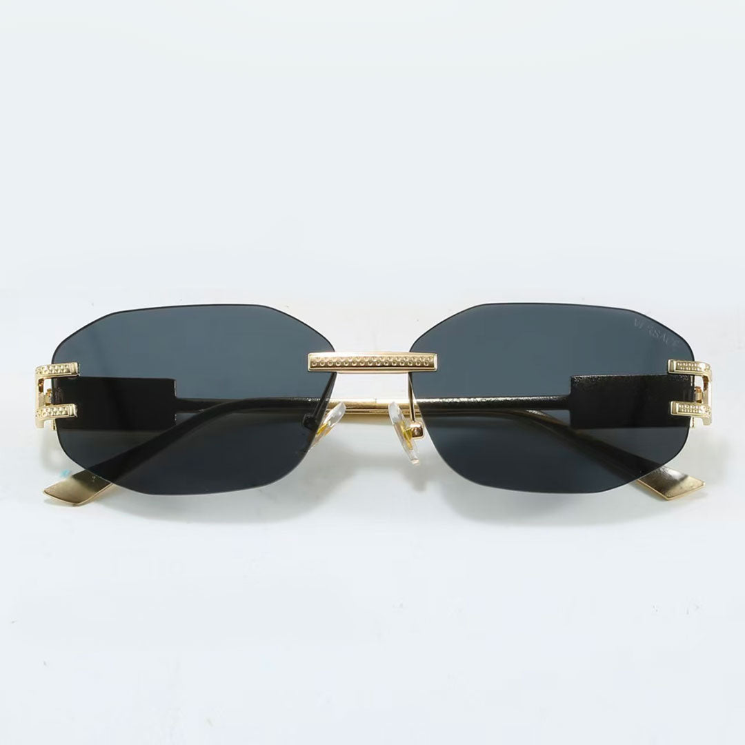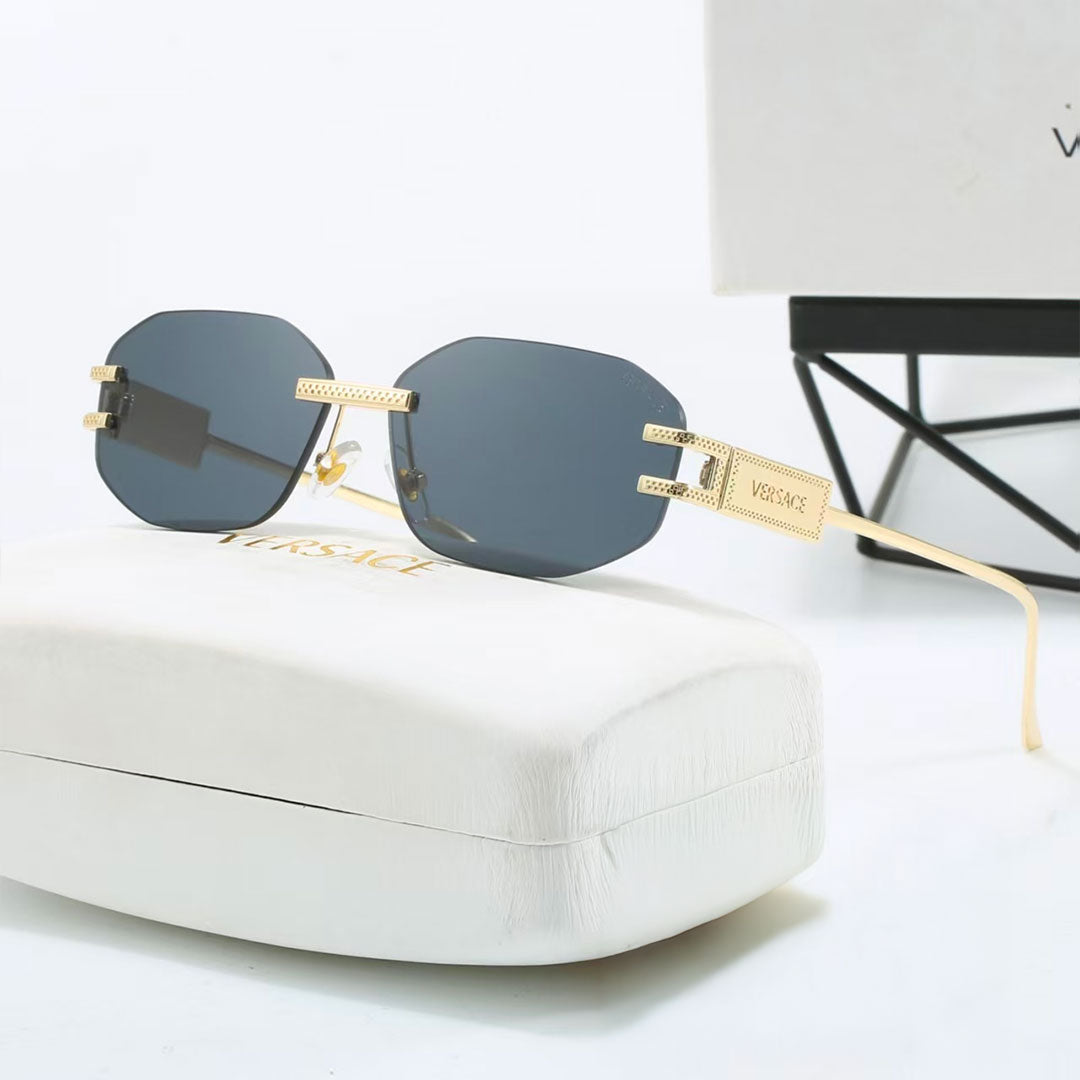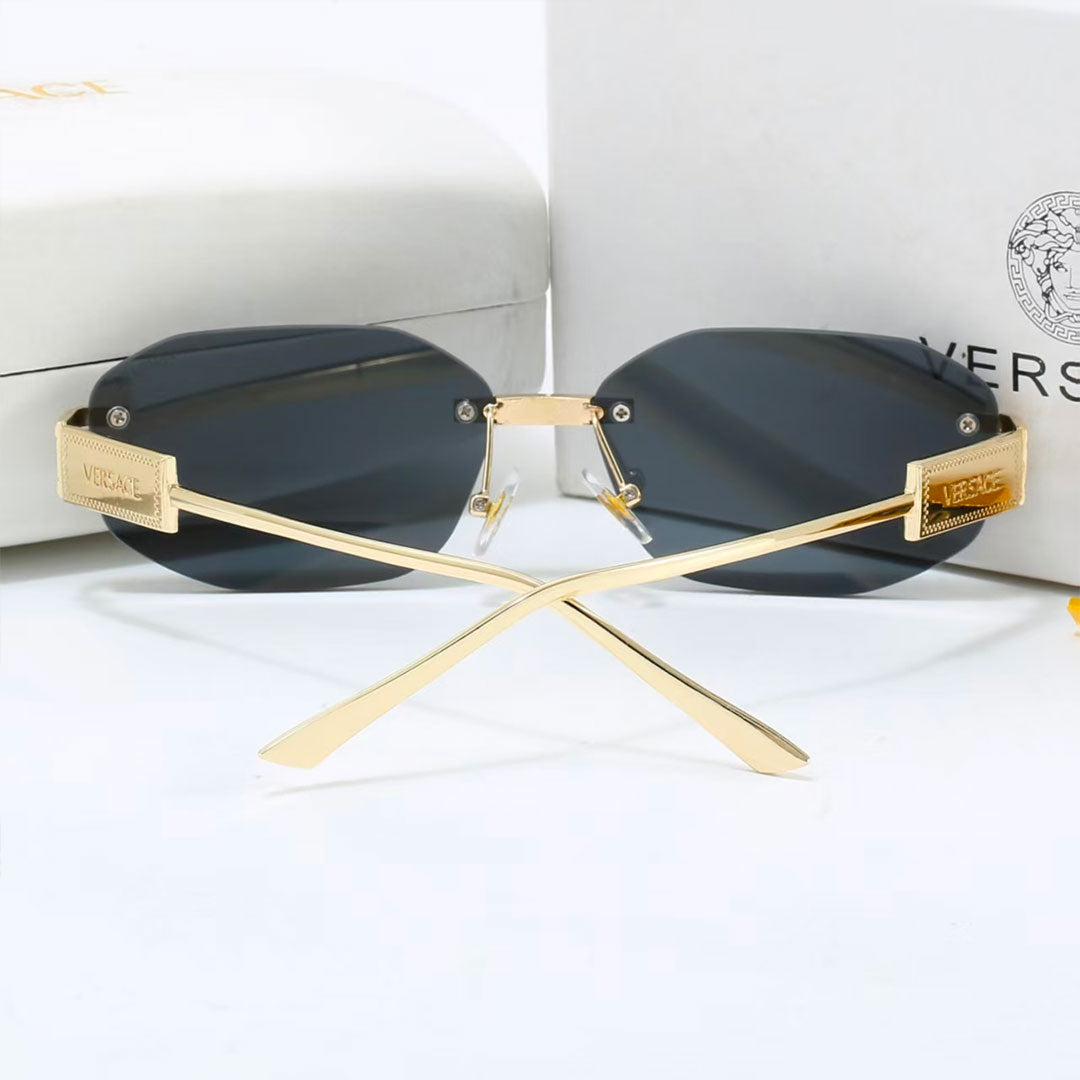 Versace eyewear is a bold expression of glamour, power, and Italian luxury. Characterized by iconic details like the Medusa emblem, each pair reflects the brand’s unmistakable identity — daring, opulent, and unapologetically stylish. This model features a geometric rimless design with golden metal details and dark gray lenses, creating a striking balance of elegance and extravagance. Perfect for those who want to stand out with confidence and prestige, these sunglasses embody Versace’s audacious spirit and luxurious craftsmanship.